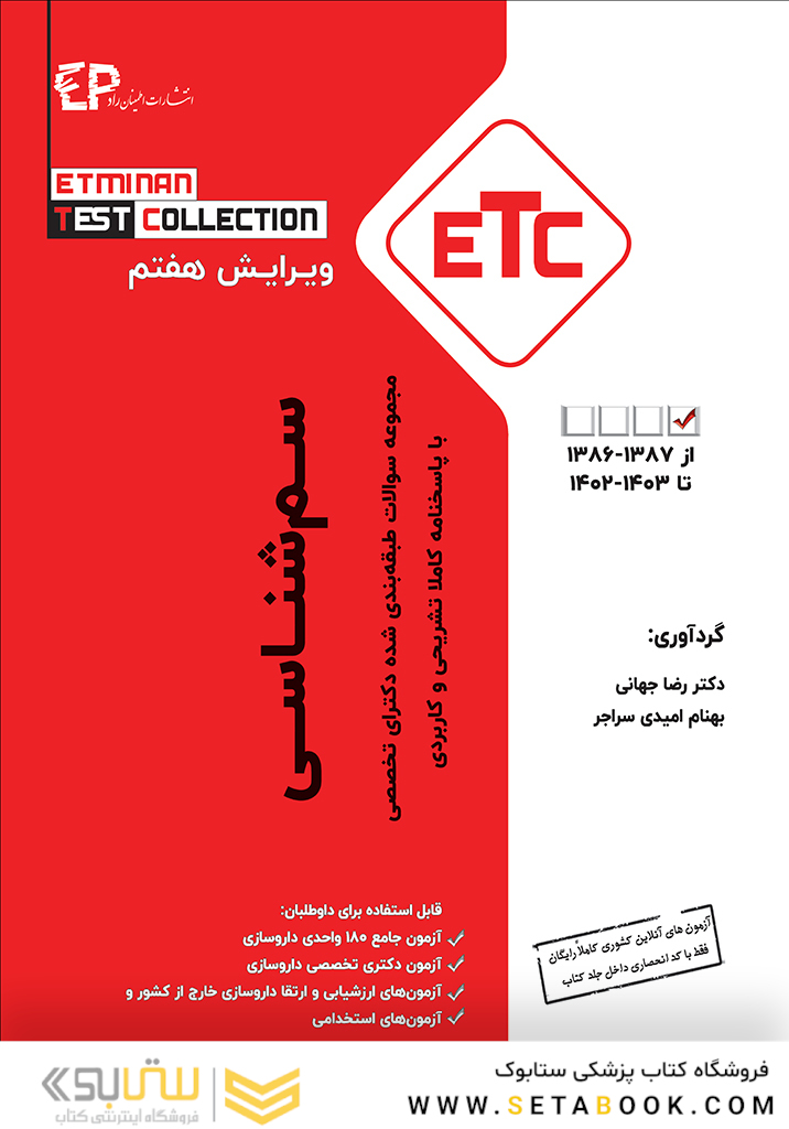 ناشر اطمینان مجموعه سوالات طبقه بندی شده دکترای تخصصی سم شناسی ETC از سال 1387-1386 تا 1402-1403 کد کتاب :100593 %10 260,000۲۳۴,۰۰۰قیمت قبلی: ۲۶۰,۰۰۰ تومان بود قیمت فعلی: ۲۳۴,۰۰۰ تومان