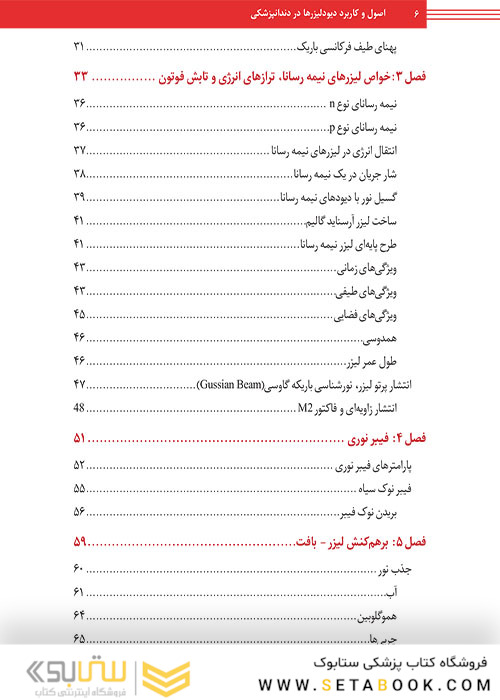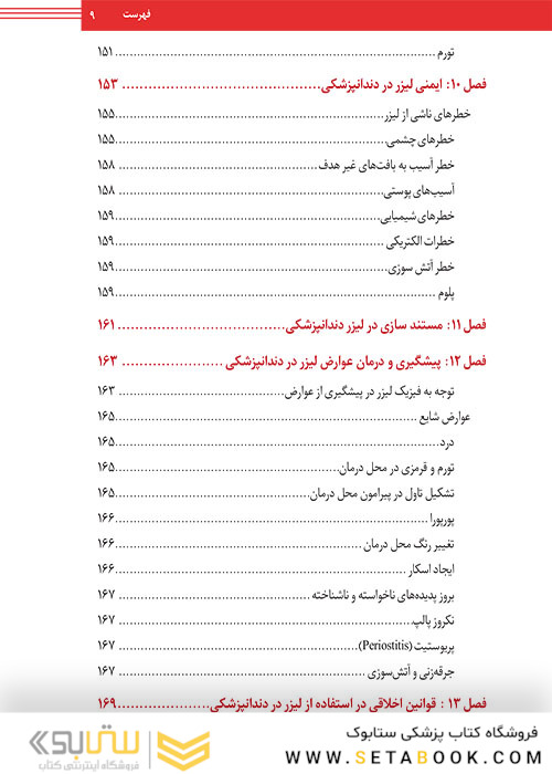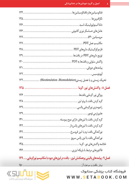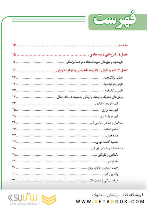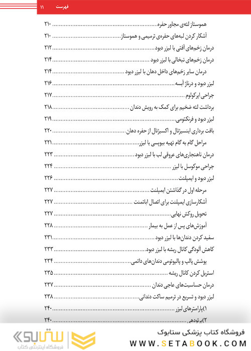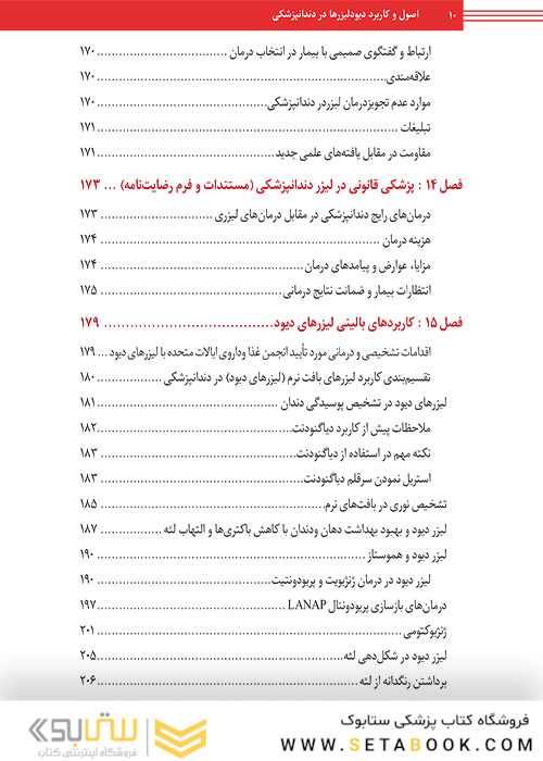 فصول مختلف کتاب به بررسی دقیق کاربردهای لیزر دیود در بخش های گوناگون دندانپزشکی اختصاص دارد؛ از جمله: