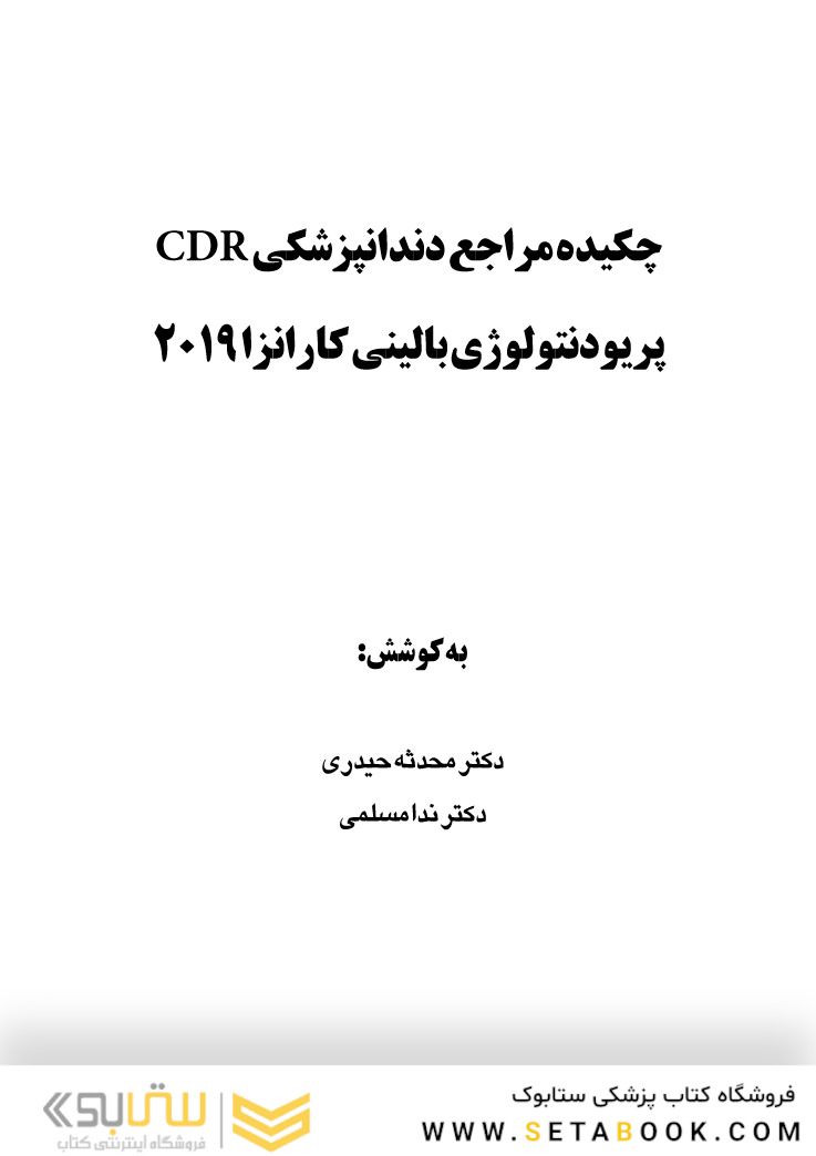 ناشر شایان نمودار CDR چکیده مراجع دندانپزشکی پریودنتولوژی بالینی کارانزا 2024 کد کتاب :196976 %10 1,280,000۱,۱۵۲,۰۰۰قیمت قبلی: ۱,۲۸۰,۰۰۰ تومان بود قیمت فعلی: ۱,۱۵۲,۰۰۰ تومان