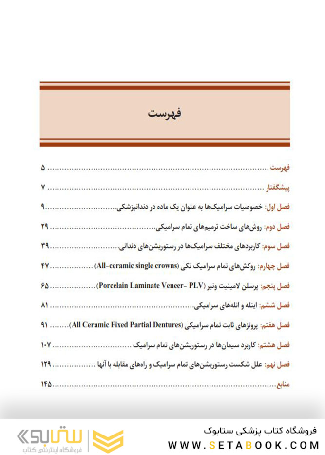 (2 ) رستوریشن های تمام سرامیک آنچه یه دندانپزشک باید بداند رستوریشن های تمام سرامیک آنچه یه دندانپزشک باید بداند رستوریشن های تمام سرامیک آنچه یه دندانپزشک باید بداند کد کتاب: 106826 قیمت و موجودی بروز میباشد ، با خیال راحت خرید کنید ناشر: رویان پژوه گروه بندی : مرجع مرجع رویان پژوه گارانتی اصالت و سلامت فیزیکی کالا ارسال رایگان حداقل 70000000 ارسال سریع با اسنپ 460,000 قیمت اصلی: ۴۶۰,۰۰۰ تومان بود. 414,000قیمت فعلی : ۴۱۴,۰۰۰ تومان 1 جمع این کالا :