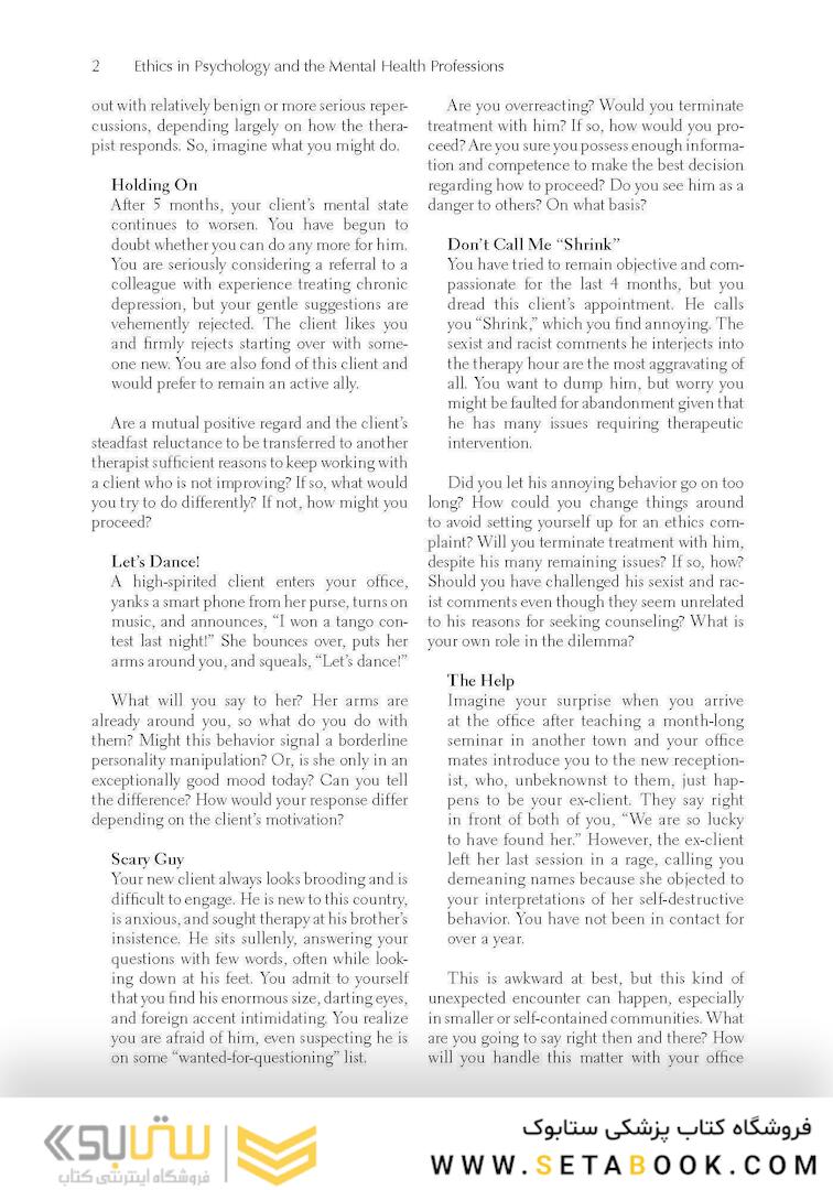 (38 ) Ethics in Psychology and the Mental Health Professions 4th Edition2016 Ethics in Psychology and the Mental Health Professions 4th Edition2016 Ethics in Psychology and the Mental Health Professions 4th Edition2016 Ethics in Psychology and the Mental Health Professions 4th Edition2016 Ethics in Psychology and the Mental Health Professions 4th Edition2016 Ethics in Psychology and the Mental Health Professions 4th Edition2016 Ethics in Psychology and the Mental Health Professions 4th Edition2016 Ethics in Psychology and the Mental Health Professions 4th Edition2016 Ethics in Psychology and the Mental Health Professions 4th Edition2016 Ethics in Psychology and the Mental Health Professions 4th Edition2016 Ethics in Psychology and the Mental Health Professions 4th Edition2016 Ethics in Psychology and the Mental Health Professions 4th Edition2016 Ethics in Psychology and the Mental Health Professions 4th Edition2016 Ethics in Psychology and the Mental Health Professions 4th Edition2016 Ethics in Psychology and the Mental Health Professions 4th Edition2016 Ethics in Psychology and the Mental Health Professions 4th Edition2016 Ethics in Psychology and the Mental Health Professions 4th Edition2016 Ethics in Psychology and the Mental Health Professions 4th Edition2016 کد کتاب: 118558 نوع صحافی سیمی 1 جلدی 50,000 تومان سیمی 2 جلدی 100,000 تومان سیمی 3 جلدی 150,000 تومان سیمی 4 جلدی 200,000 تومان سیمی 5 جلدی 250,000 تومان سیمی 6 جلدی 300,000 تومان شومیز(جلد نرم) 60,000 تومان تحریر + رنگی هارد کاور 1جلدی (جلد سخت) 130,000 تومان هارد کاور 2جلدی (جلد سخت) 260,000 تومان هارد کاور 3جلدی (جلد سخت) 390,000 تومان نوع چاپ سیاه و سفید 380,000 تومان کسر مبلغ گلاسه+رنگی+ سیمی 1,882,000 تومان قیمت و موجودی بروز میباشد ، با خیال راحت خرید کنید ناشر: Oxford University Press گروه بندی : روانپزشکی و روانشناسی - Psychiatry روانپزشکی و روانشناسی - Psychiatry Oxford University Press گارانتی اصالت و سلامت فیزیکی کالا ارسال رایگان حداقل 70000000 ارسال سریع با اسنپ 1,901,000 قیمت اصلی: ۱,۹۰۱,۰۰۰ تومان بود. 1,711,000قیمت فعلی : ۱,۷۱۱,۰۰۰ تومان 1 جمع این کالا :