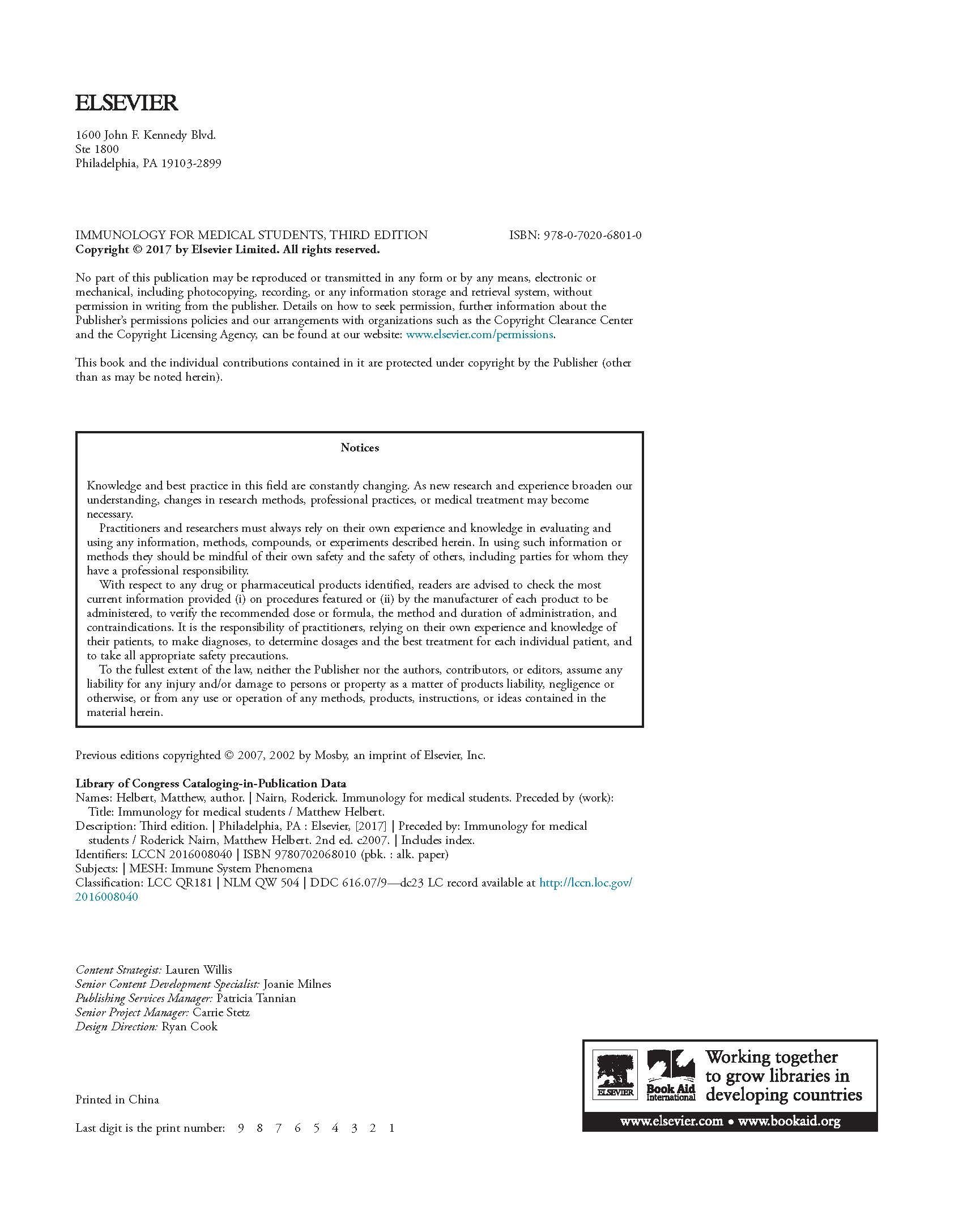 در این کتاب، به تفصیل به موضوعاتی چون انواع سلول های ایمنی، سایتوکاین ها، کمپلمان، ایمنی زایی، پاسخ های ایمنی علیه عوامل بیماری زا، و همچنین اختلالات سیستم ایمنی مانند آلرژی ها، بیماری های خودایمنی و نقص های ایمنی پرداخته شده است. Matthew Helbert با بهره گیری از تجربیات علمی و آموزشی خود، توانسته است متنی کاربردی و غنی را برای جامعه پزشکی فراهم آورد.