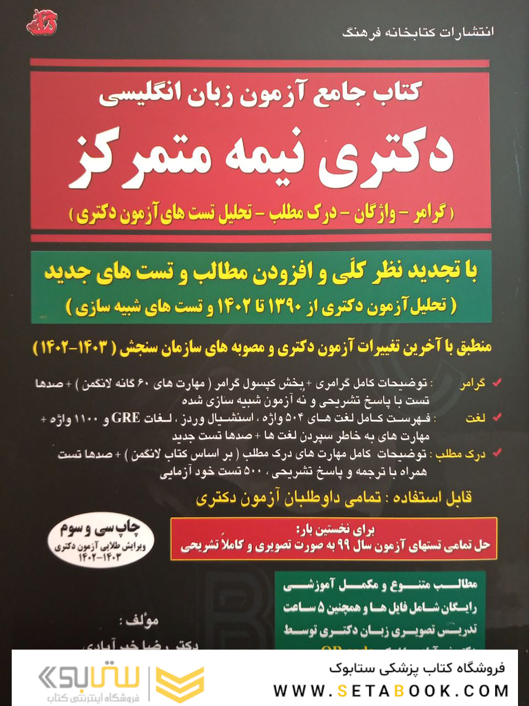 ناشر جامعه نگر درسنامه جامع آزمونهای زبان دکتری TOLIMO ،MSRT ،MHLE ،MCHE وEPT دکتر لزگی کد کتاب :100468 %5 1,890,000۱,۷۹۶,۰۰۰قیمت قبلی: ۱,۸۹۰,۰۰۰ تومان بود قیمت فعلی: ۱,۷۹۶,۰۰۰ تومان