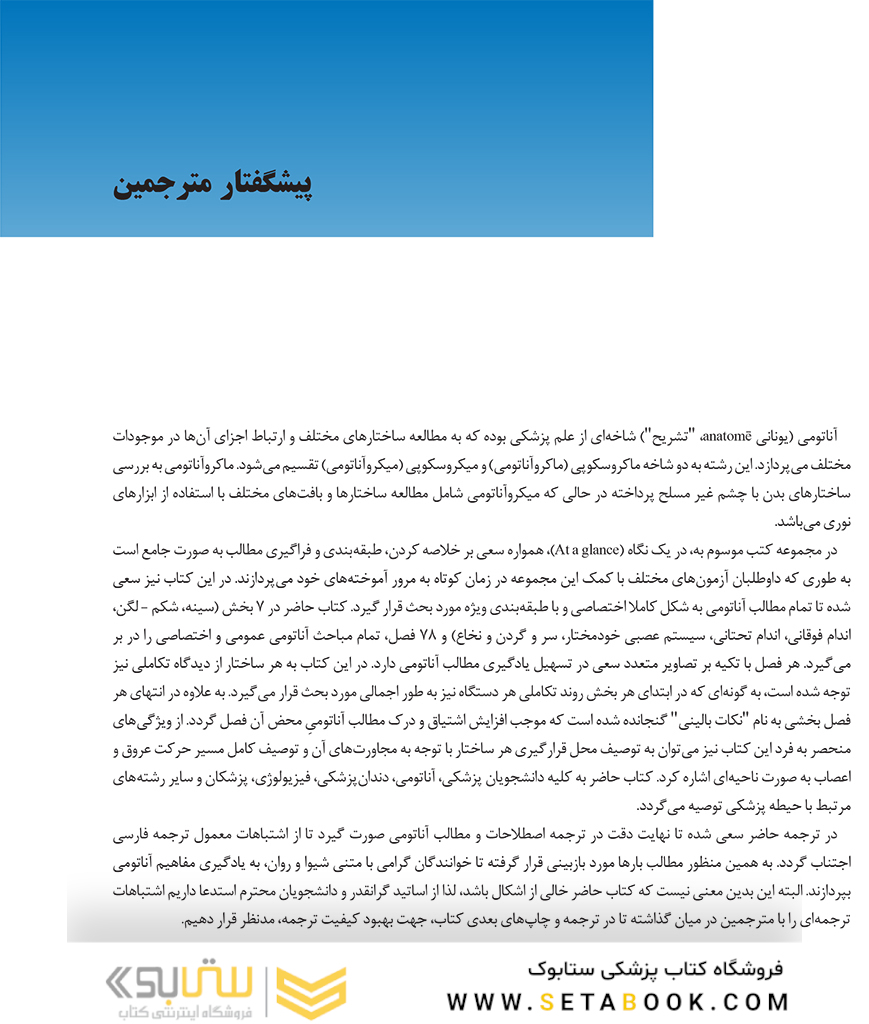 ناشر اندیشه رفیع ترجمه کامل چهار جلدی آناتومی گری برای دانشجویان 2024 ( رضا شیرازی) کد کتاب :190482 %10 1,500,000۱,۳۵۰,۰۰۰قیمت قبلی: ۱,۵۰۰,۰۰۰ تومان بود قیمت فعلی: ۱,۳۵۰,۰۰۰ تومان