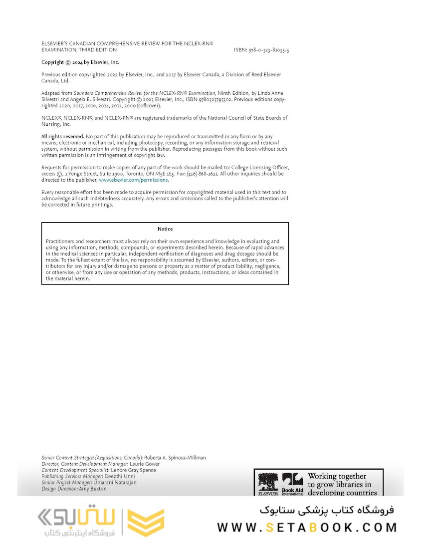 کتاب Elsevier''s Canadian Comprehensive Review for the NCLEX-RN Examination، سومین چاپ، نوشته Patricia A. Bradley، یک منبع ضروری برای دانشجویان پرستاری و پرستاران حرفه ای است که قصد دارند در آزمون NCLEX-RN کانادا موفق شوند. این کتاب با پوشش جامع تمامی مباحث کلیدی مورد نیاز برای این آزمون، به شما کمک می کند تا با اطمینان خاطر در جلسه امتحان حاضر شوید.
