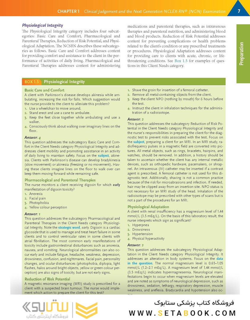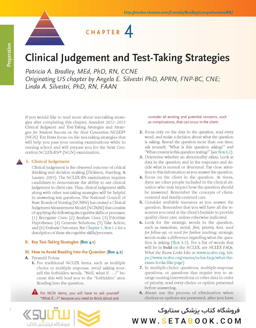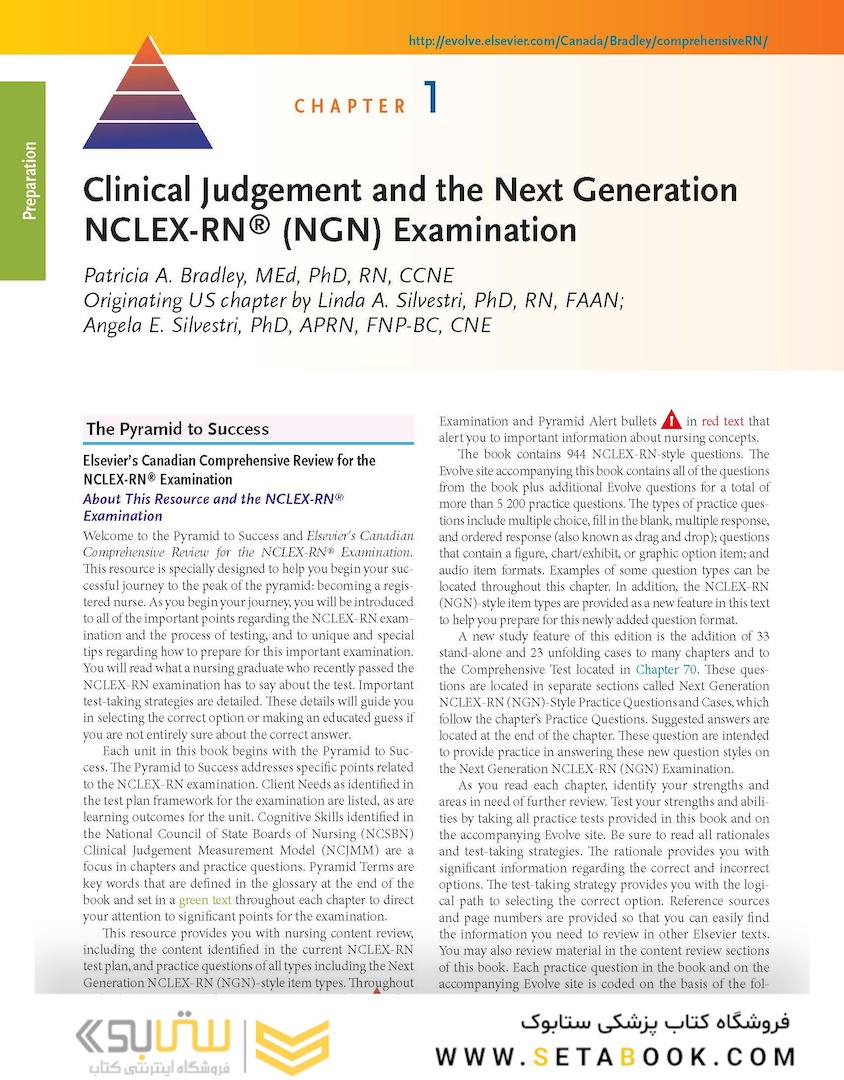 - تمرکز بر استدلال بالینی: کتاب بر توسعه مهارت های تفکر انتقادی و استدلال بالینی تأکید دارد، که برای موفقیت در NCLEX-RN حیاتی است.
