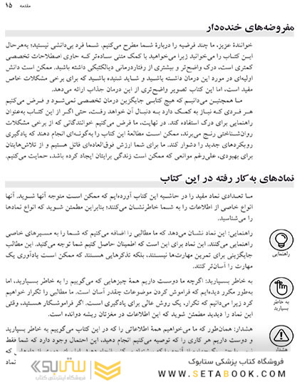 - تمرین های عملی: تمرین های گنجانده شده در کتاب، به خوانندگان کمک می کنند تا آموخته های خود را در موقعیت های مختلف زندگی شخصی و حرفه ای تمرین کرده و به کار گیرند.